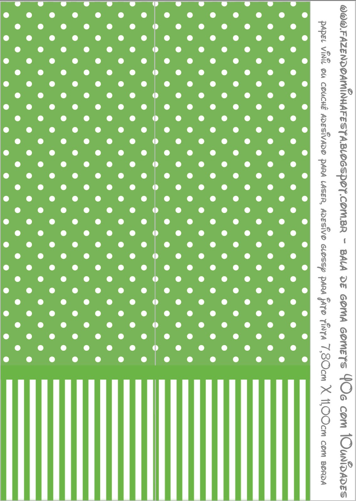 Rótulo Bala de Goma Gomets Poá Verde e Listras:
