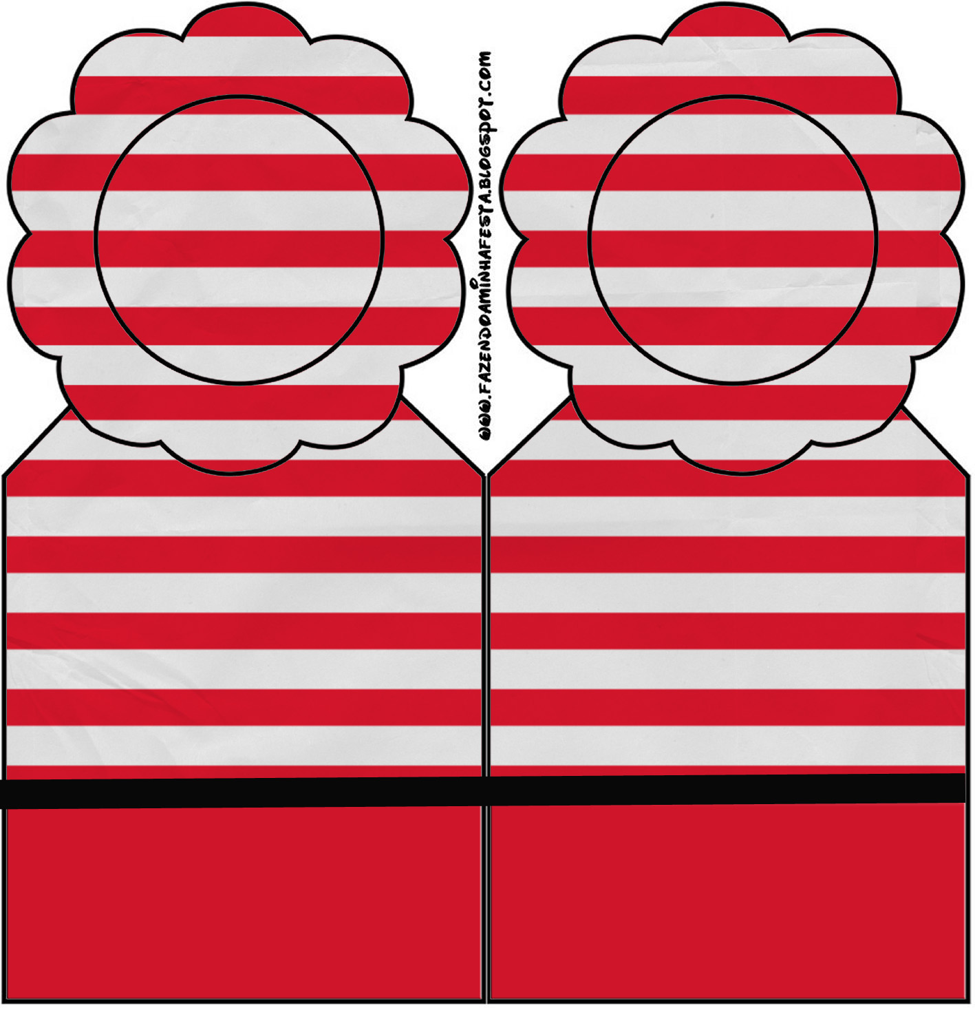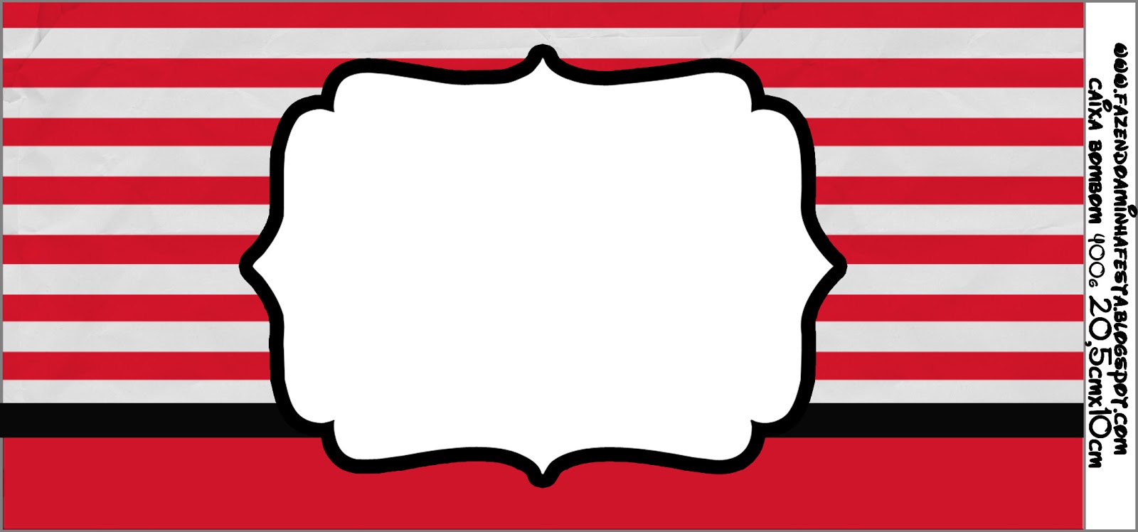 Vermelho Listrado – Kit Completo com molduras para convites, rótulos para guloseimas, lembrancinhas e imagens!