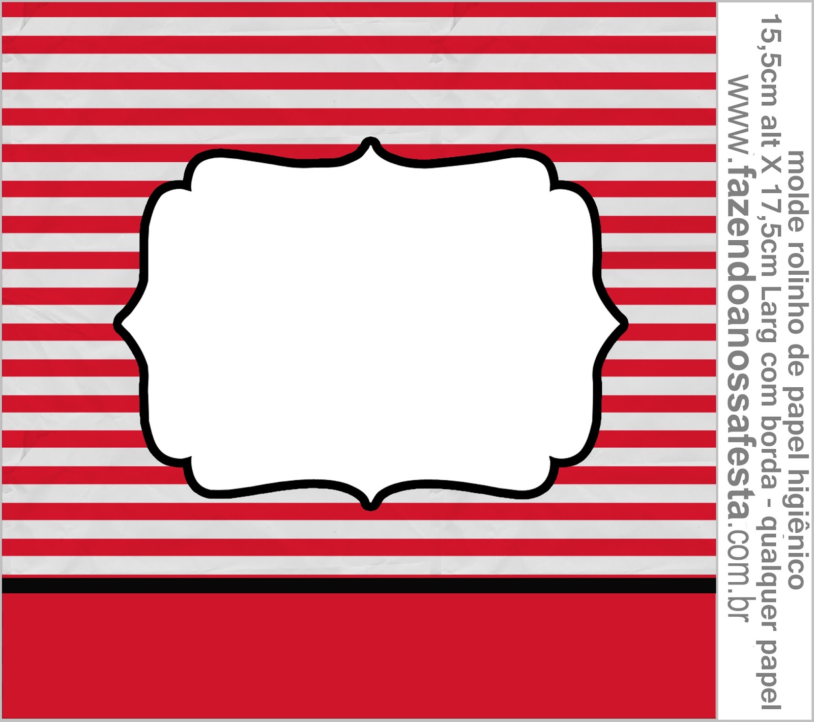 Rótulo Molde Rolinho de Papel Higiênico Vermelho Listrado: