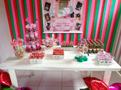 Vejam que graça a festinha que nossa leitora Stephany Caroline fez para sua afilhada Maria de 3 anos com o Tema Moranguinho! Ela deve ajuda da Mamãe de Maria e sua outra tia! Sua festa ficou super fofa!