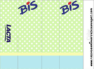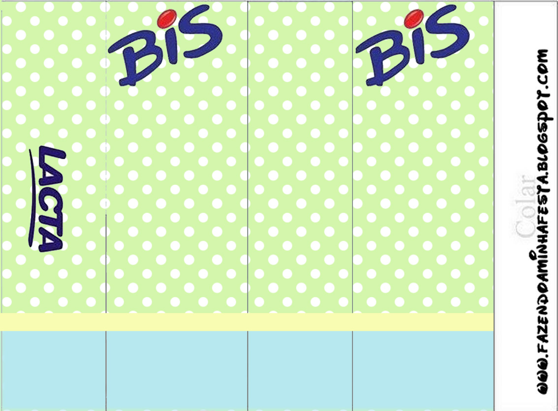 Rótulo Bis com Logo Lacta Poá Verde e Azul: