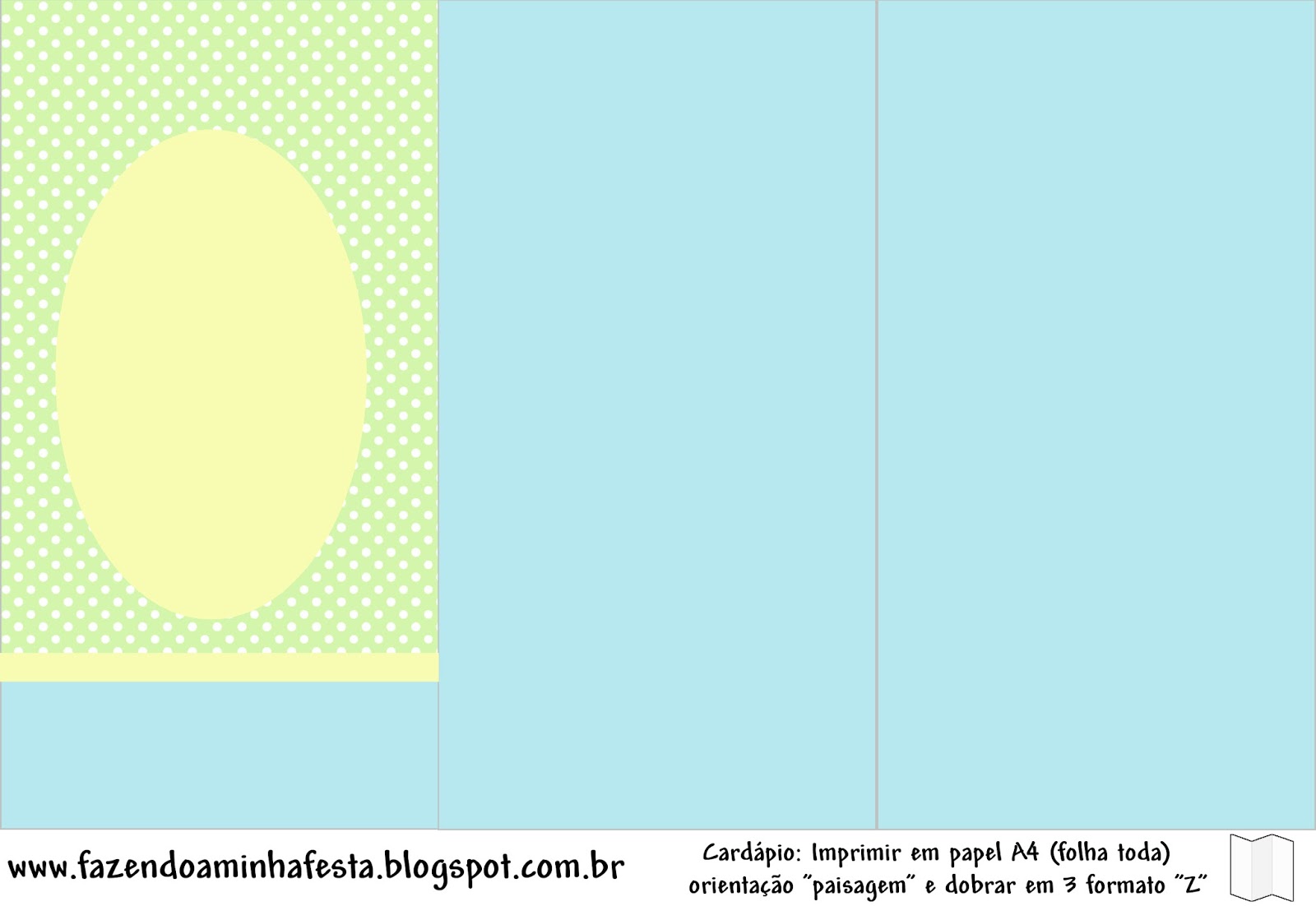 Convite, Cardápio ou Cronograma em Z Poá Verde e Azul: