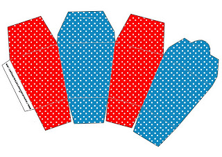 Convite Caixa Fundo Poá Vermelho e Azul: