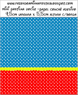 Rótulo Mini Pastilha Docile Poá Vermelho e Azul: