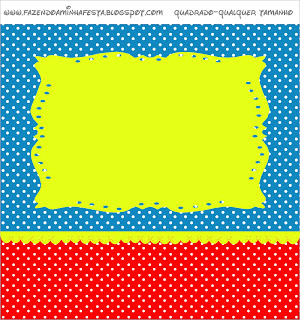 Poá Vermelho e Azul – Kit Completo com molduras para convites, rótulos para guloseimas, lembrancinhas e imagens!