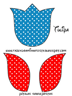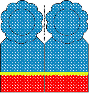 Convite Caixa Tampa Poá Vermelho e Azul: