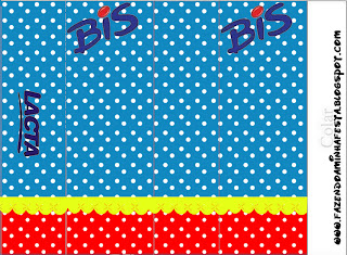 Rótulo Bis Duplo Poá Vermelho e Azul: