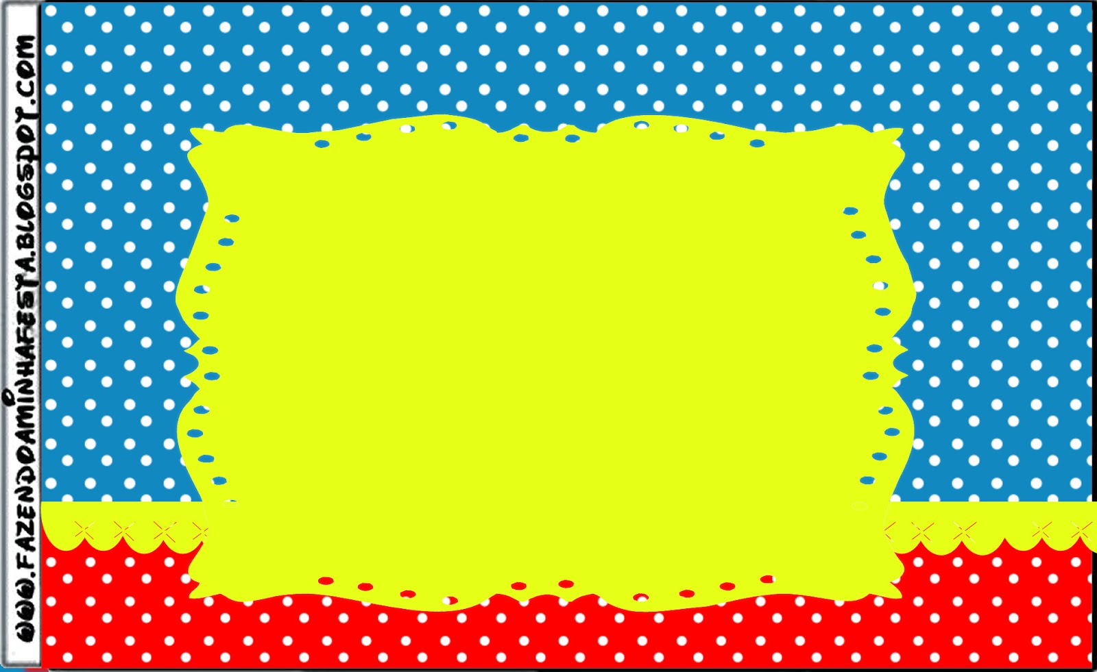 Moldura Convite e Cartão Poá Vermelho e Azul: