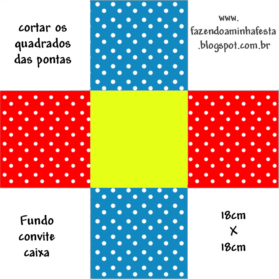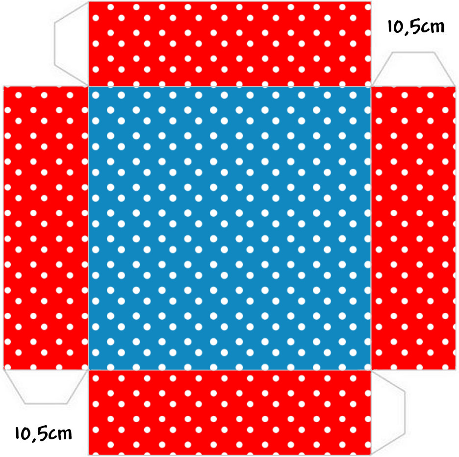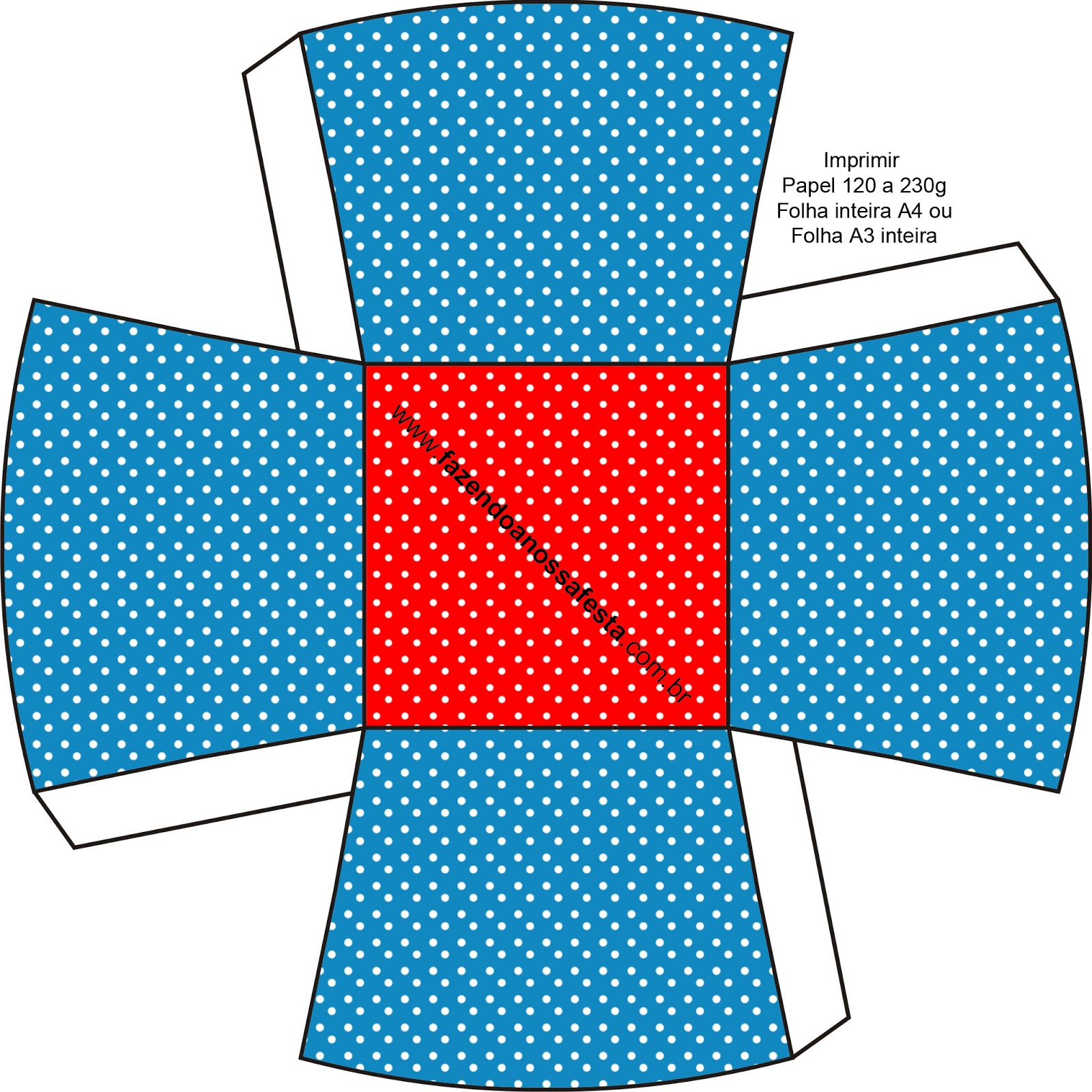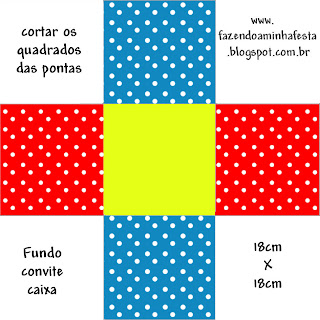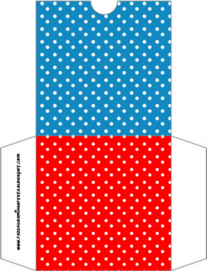 Convite Caixa Fundo Poá Vermelho e Azul: