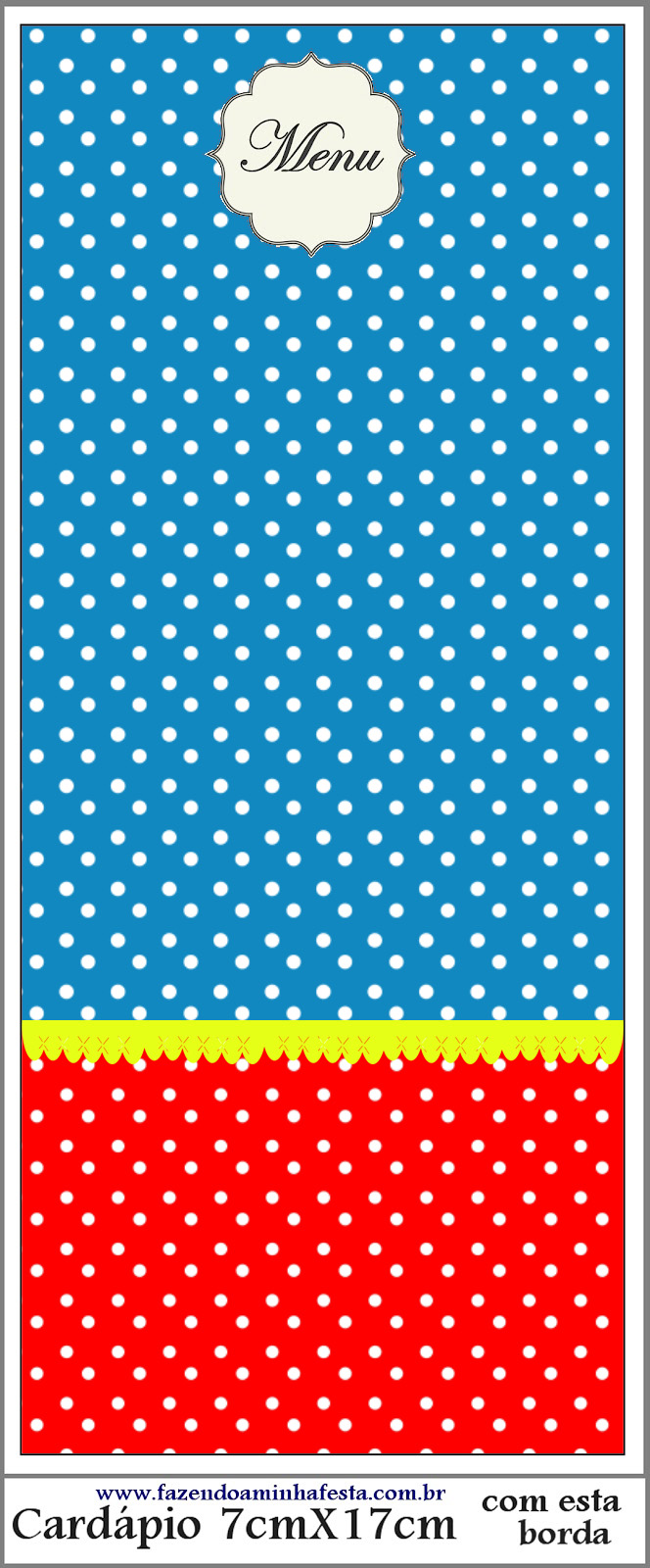 Cardápio, Convite ou Cronograma em Z Poá Vermelho e Azul: