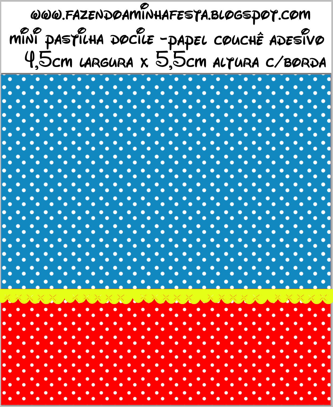 Rótulo Mini Pastilha Docile Poá Vermelho e Azul:
