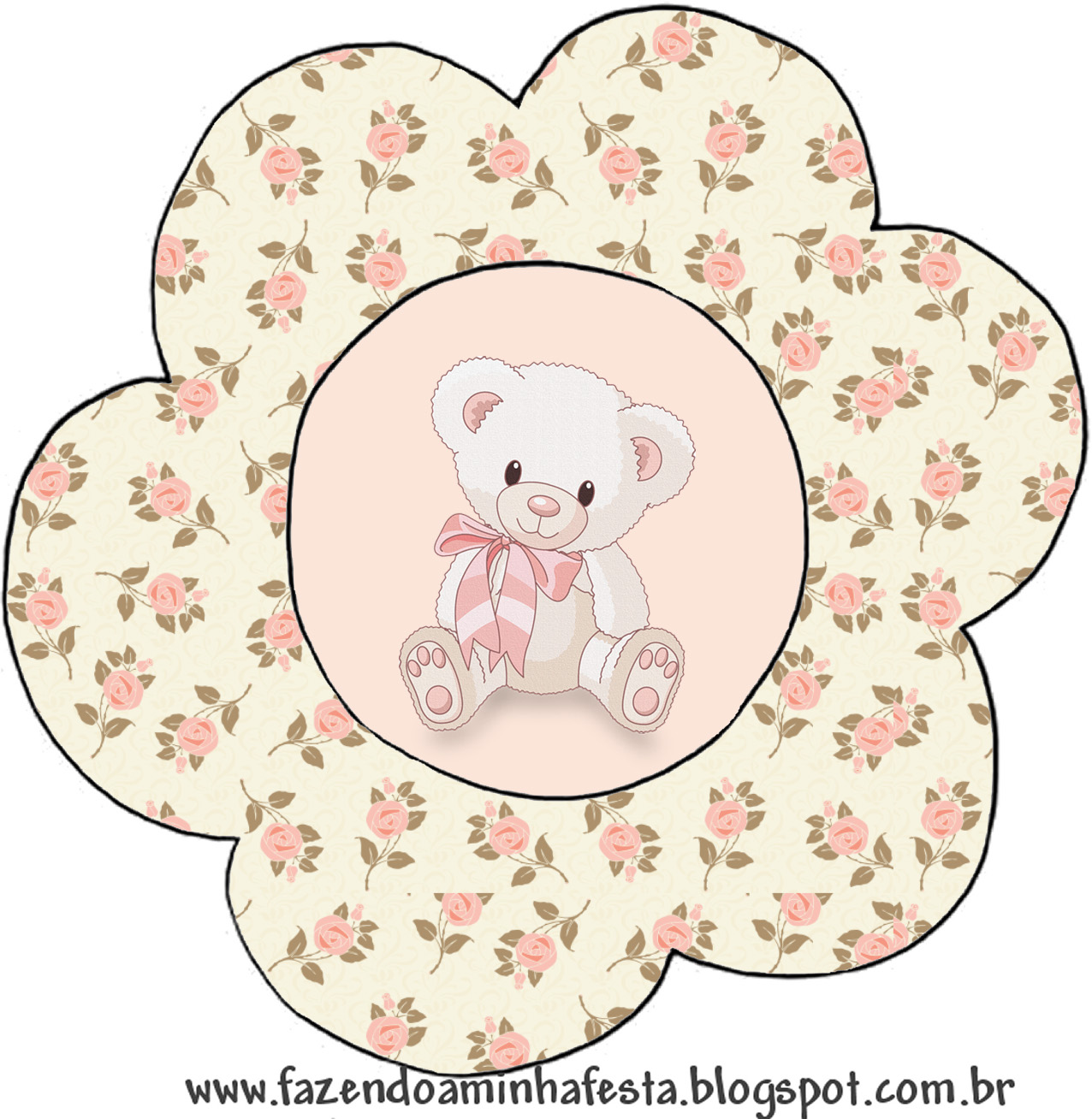 Rótulo Bis Duplo Ursinha Floral Rosa: