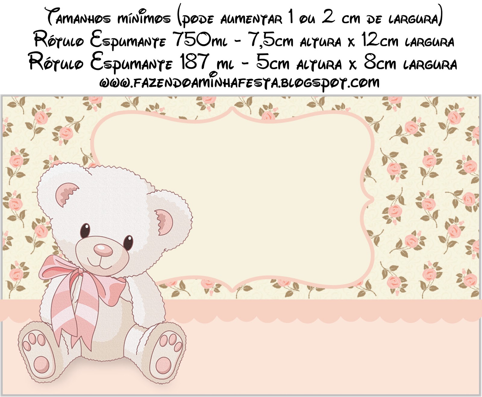 Rótulo Champagne, Vinho e Espumante Ursinha Floral Rosa:
