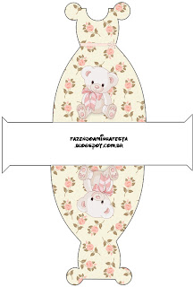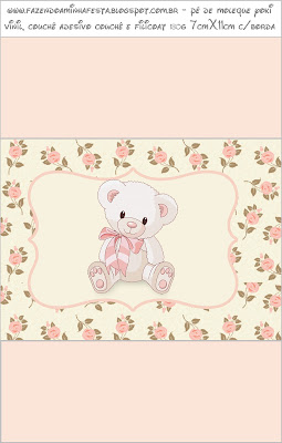Rótulo Garrafas Ursinha Floral Rosa: