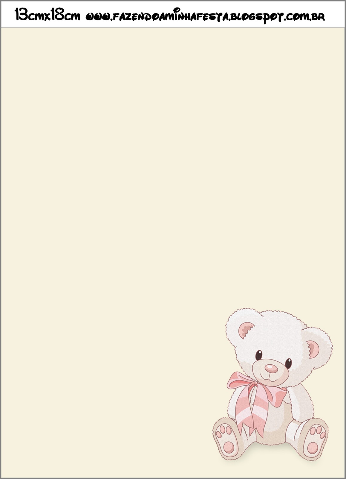 Moldura Convite e Cartão Ursinha Floral Rosa: