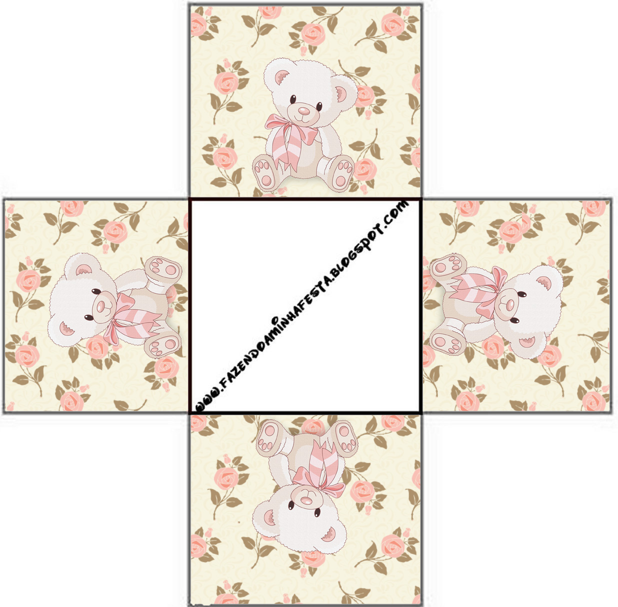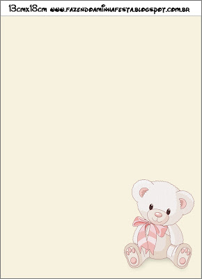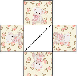 Convite Caixa Fundo Ursinha Floral Rosa: