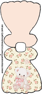 Convite Vestido Ursinha Floral Rosa: