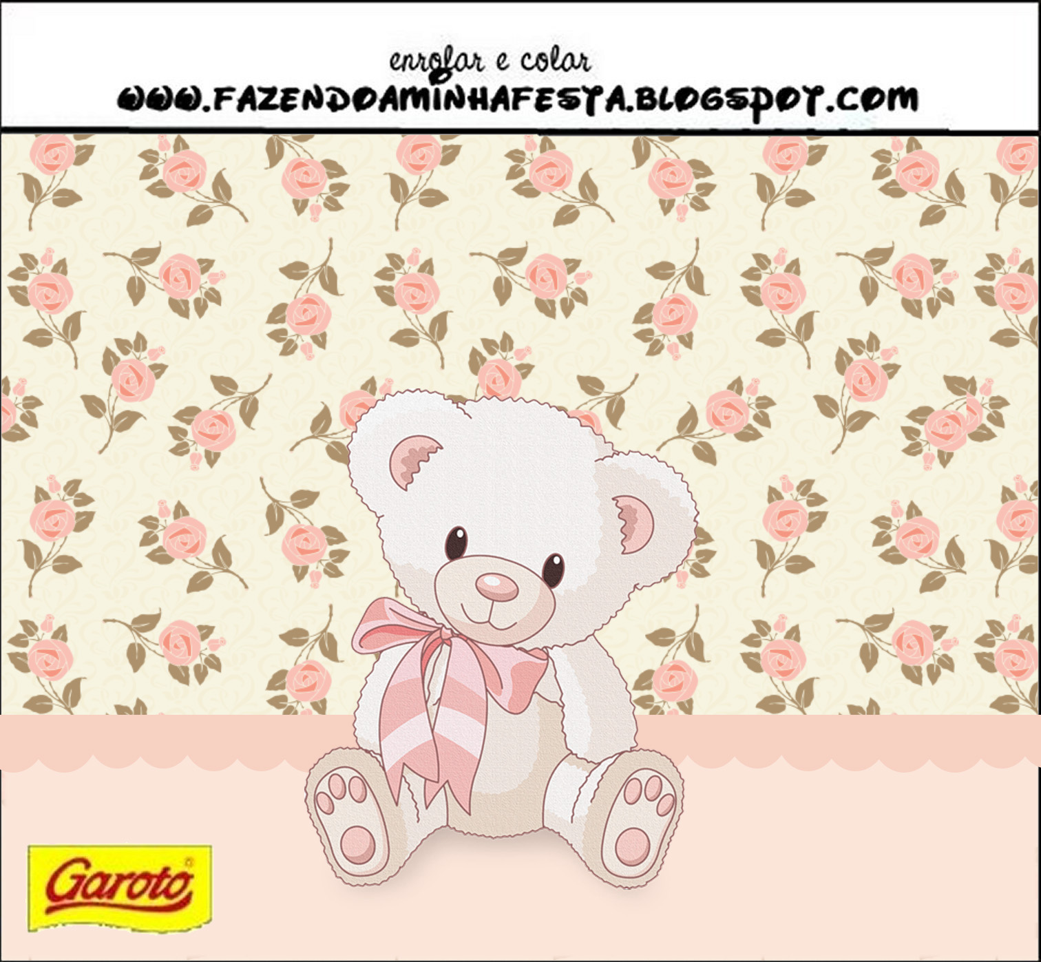 Rótulo Pastilha Garoto Ursinha Floral Rosa: