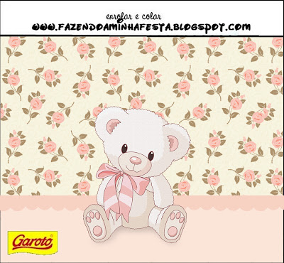 Rótulo Bis com Logo Lacta Ursinha Floral Rosa: