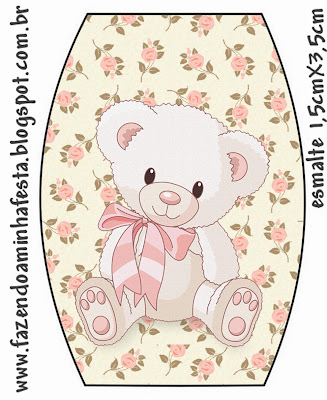 Convite Caixa Tampa Ursinha Floral Rosa: