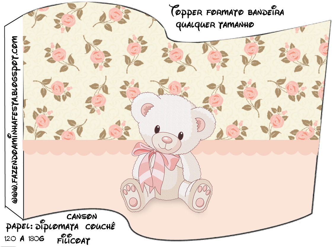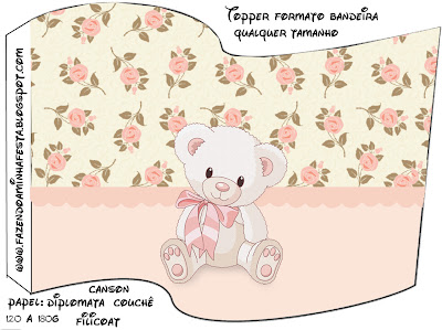 Topper Bandeira Ursinha Floral Rosa: