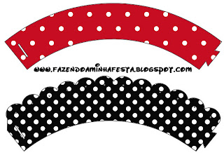 Saias Wrappers para Cupcakes Vermelho e Preto Poá: