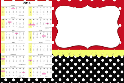 Convite Calendário 2014 Vermelho e Preto Poá: