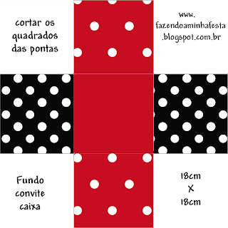 Convite Caixa Fundo Vermelho e Preto Poá: