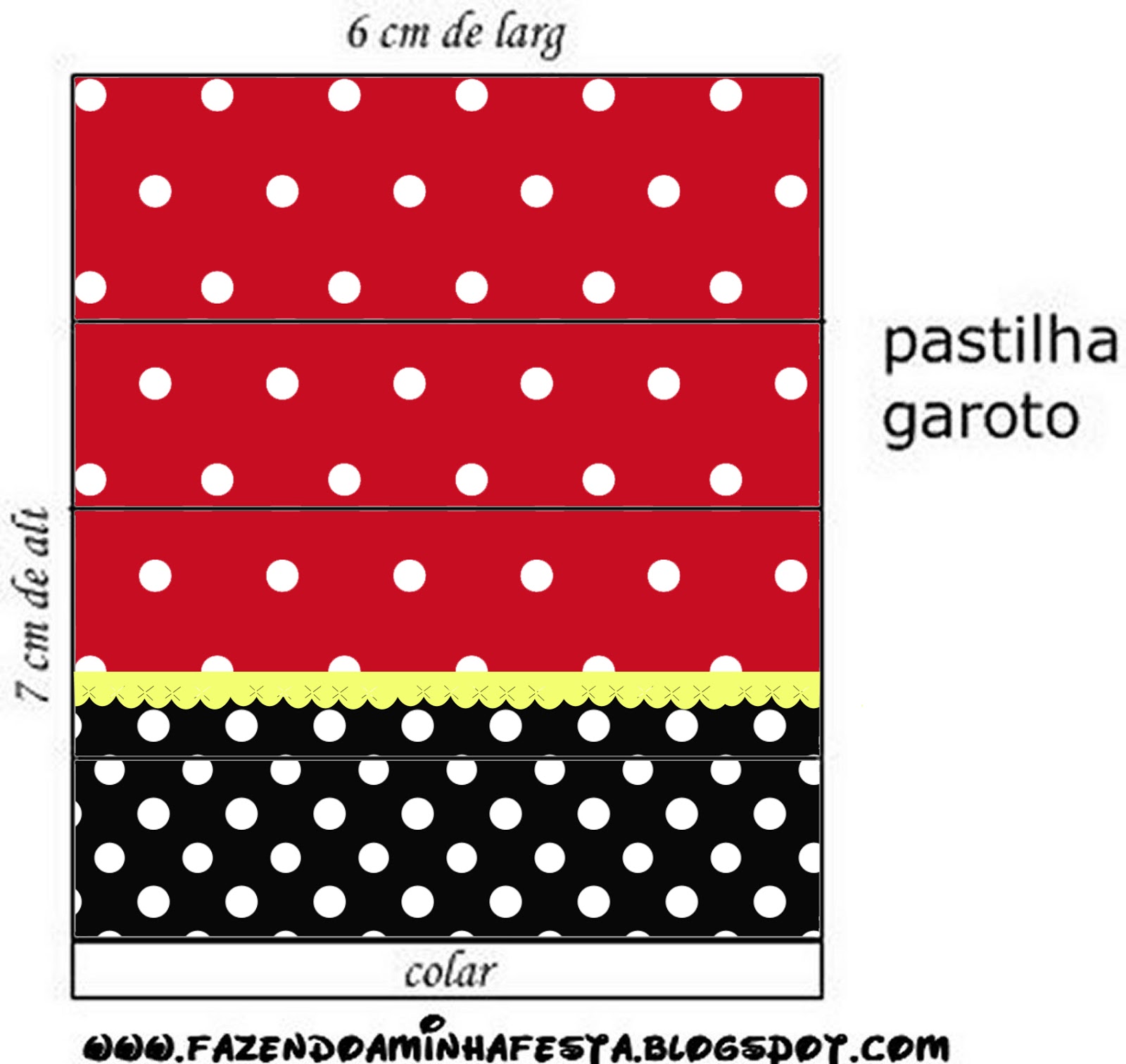Rótulo Mini M&M Vermelho e Preto Poá: