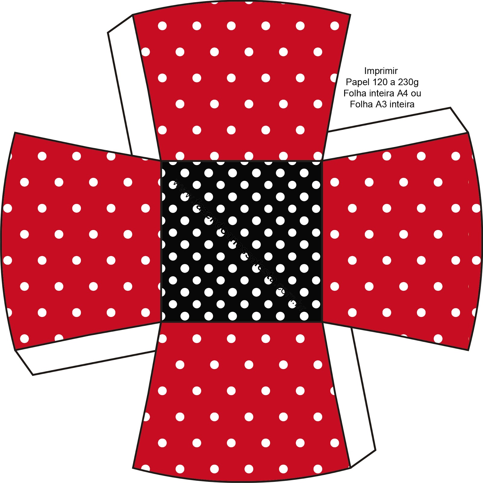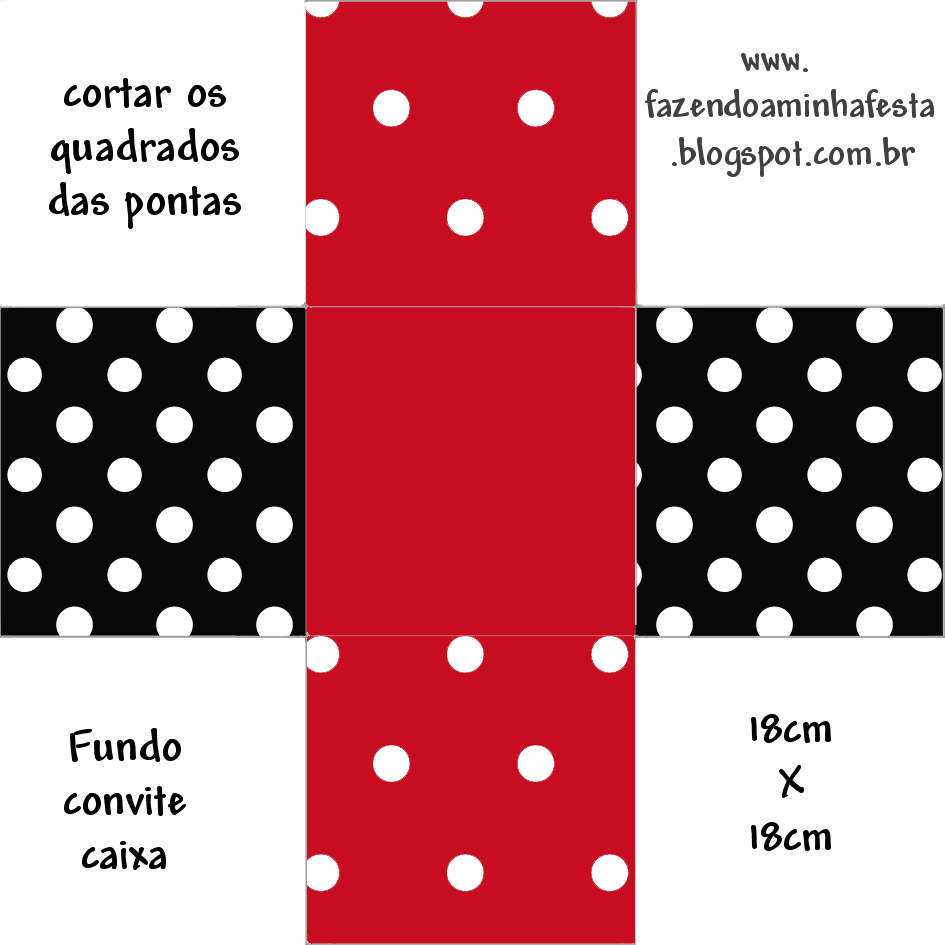 Convite Caixa Fundo Vermelho e Preto Poá: