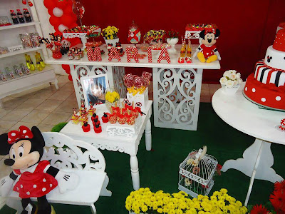 Vejam que fofa a festinha que nossa leitora Ivana Pimenta fez com o Tema Minnie! Ela usou o nosso kit Floral Vermelho e adicionou as imagens da Minnie, ficou muito legal!