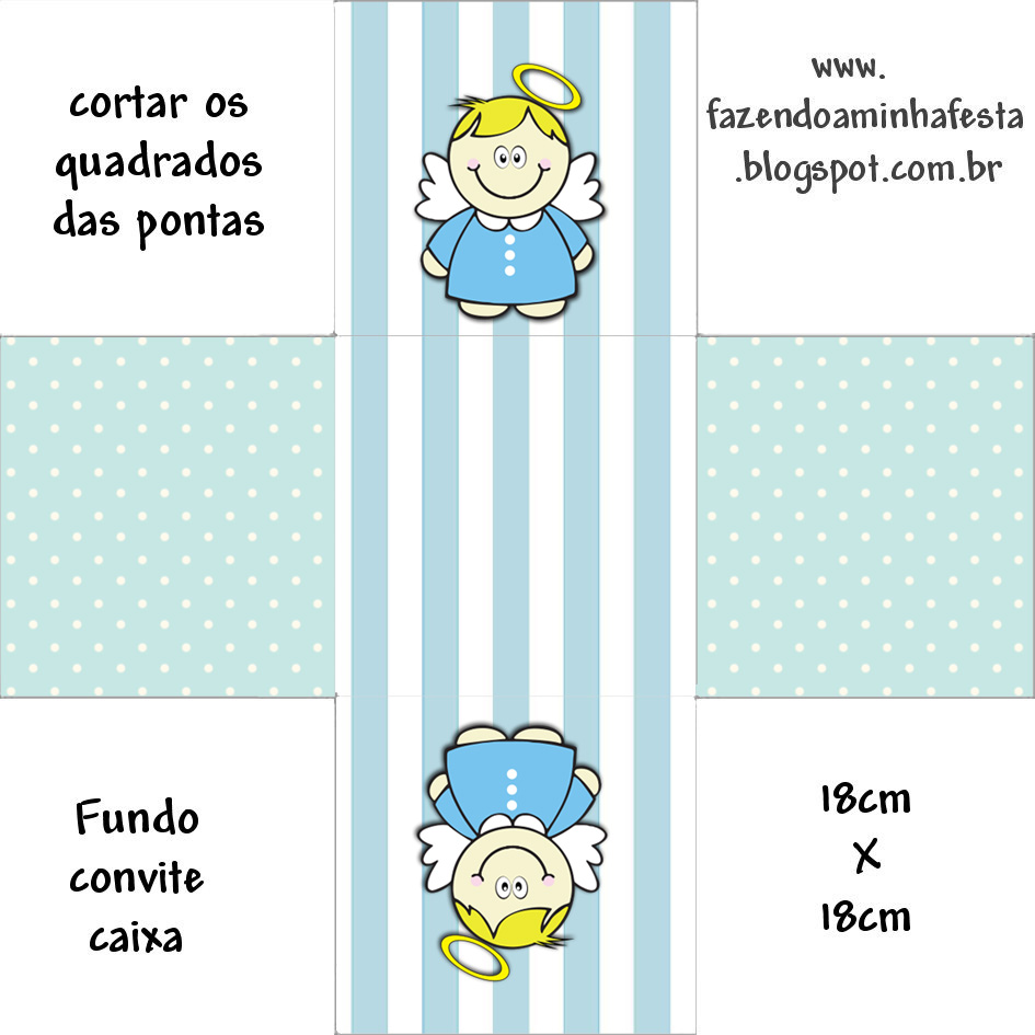 Convite Caixa Fundo Batizado (Anjinho) Menino: