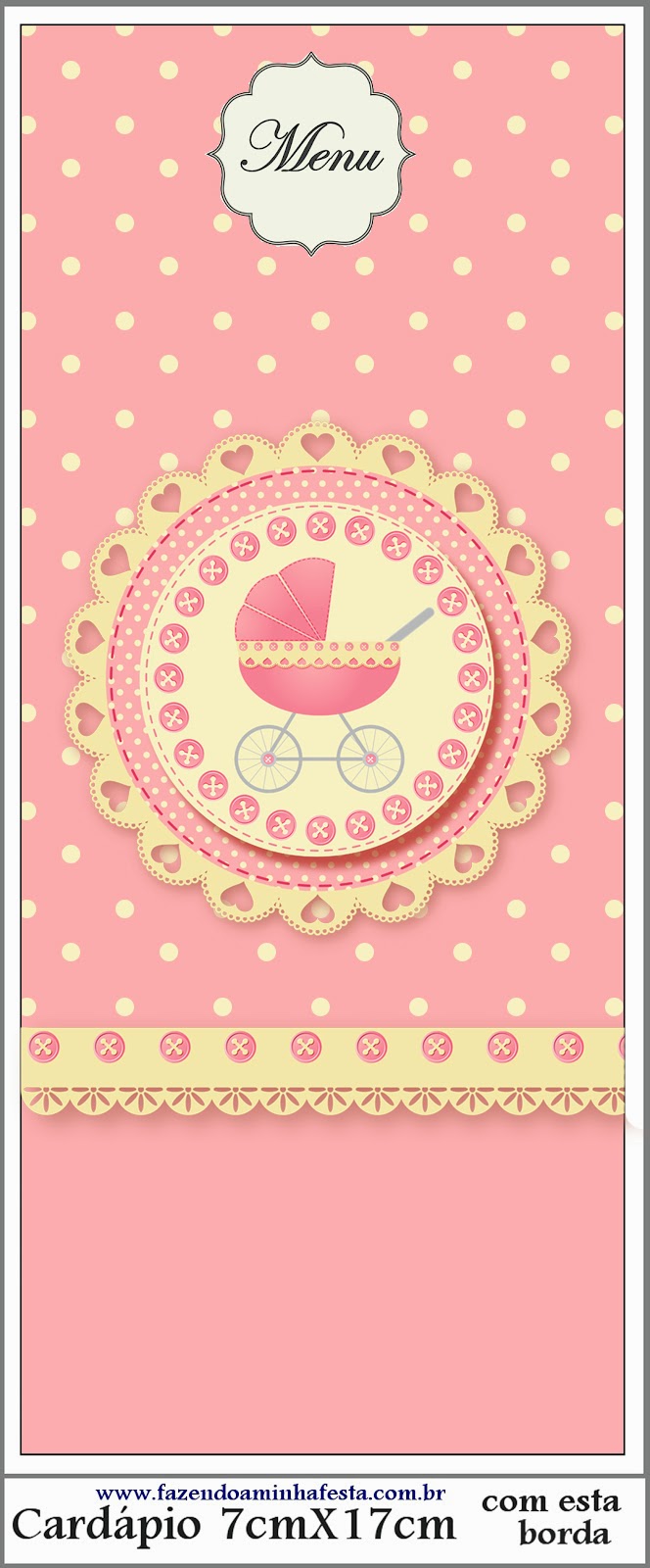 Convite, Cardápio ou Cronograma em Z Carrinho de Bebê Menina: