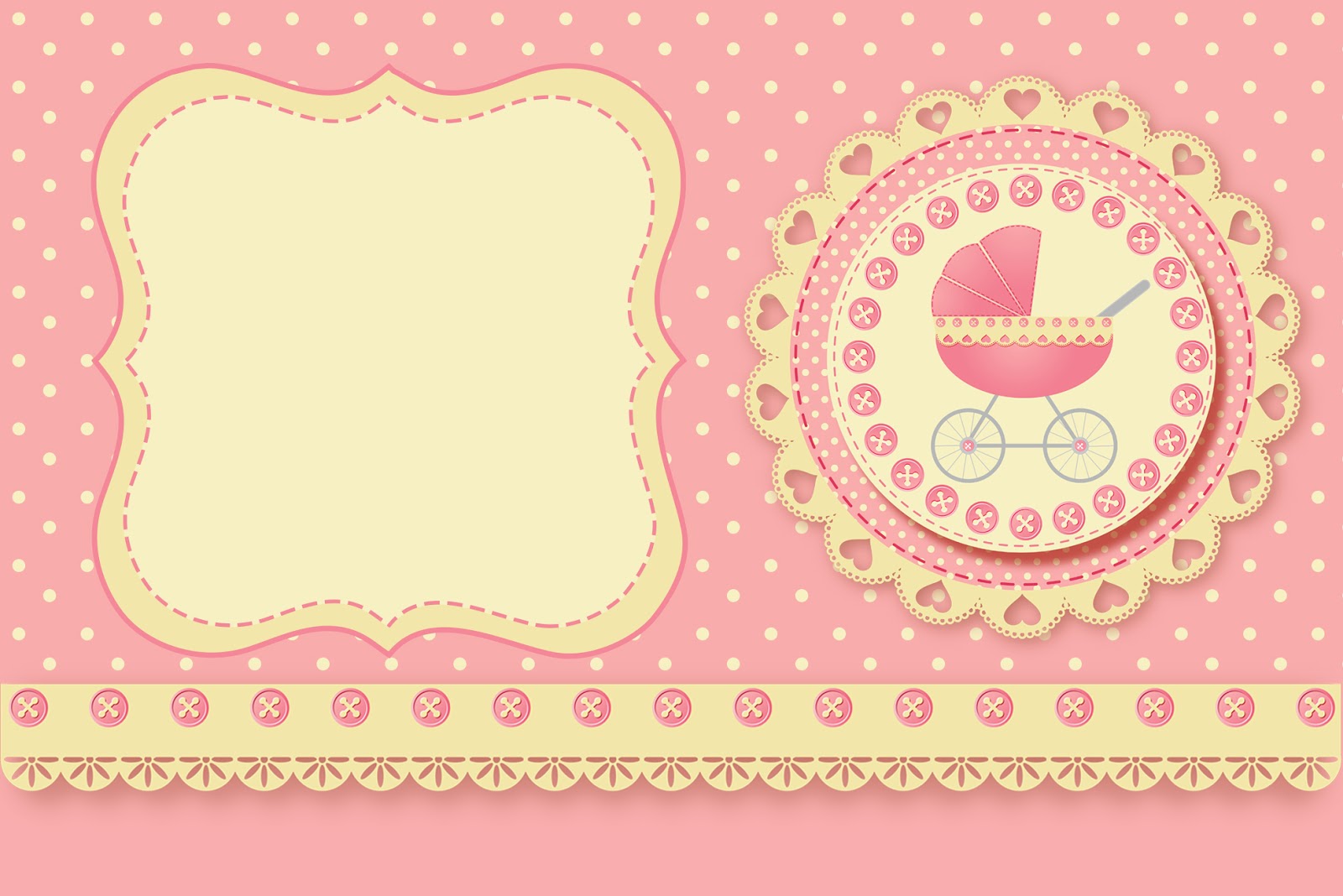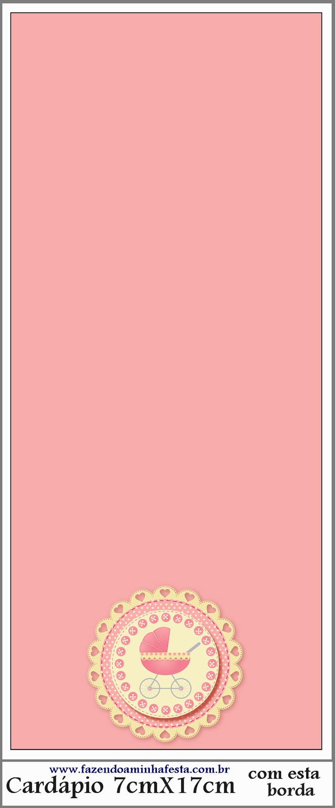 Moldura Convite e Cartão Carrinho de Bebê Menina: