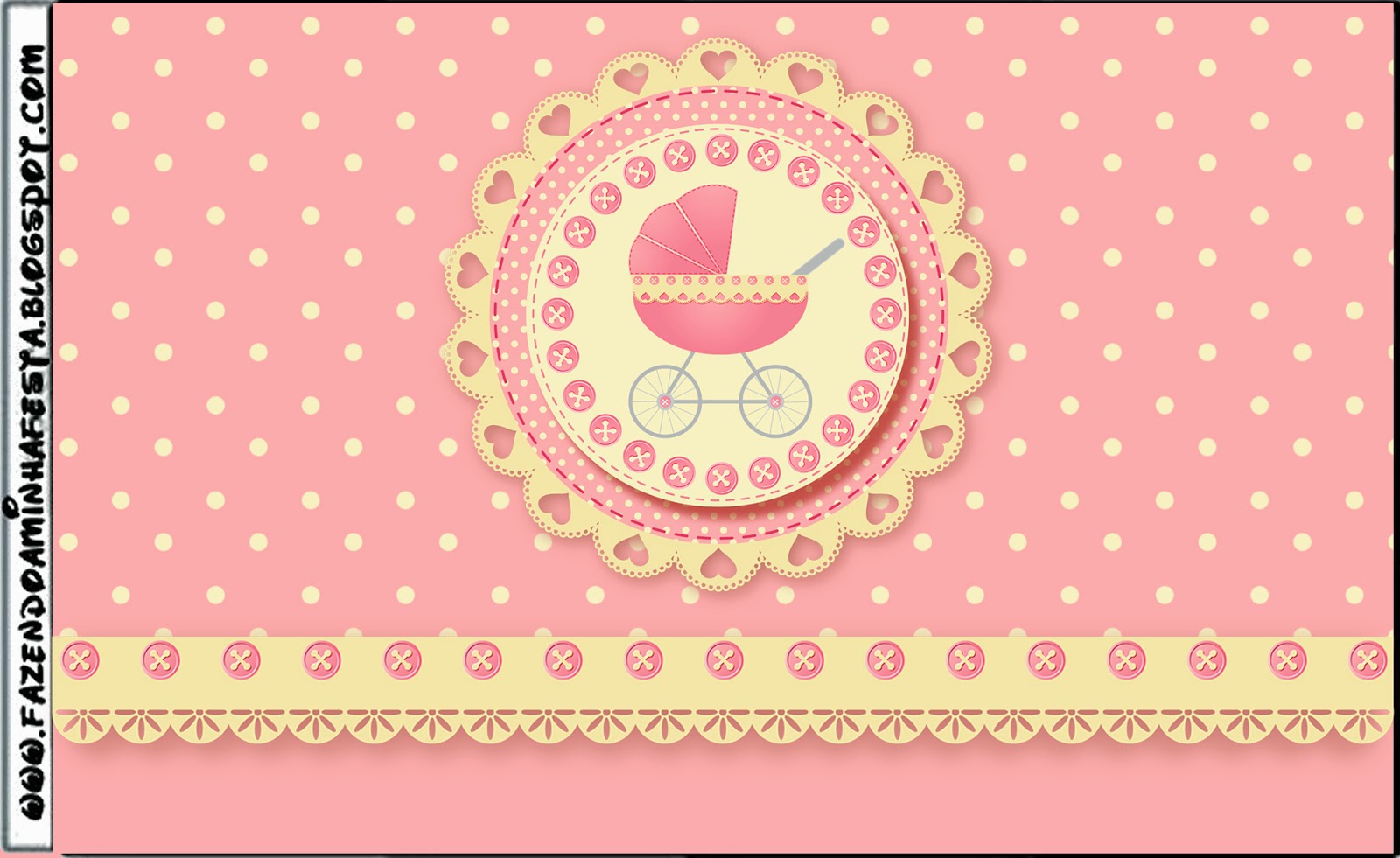 Carrinho de Bebê Menina – Kit Completo com molduras para convites, rótulos para guloseimas, lembrancinhas e imagens!