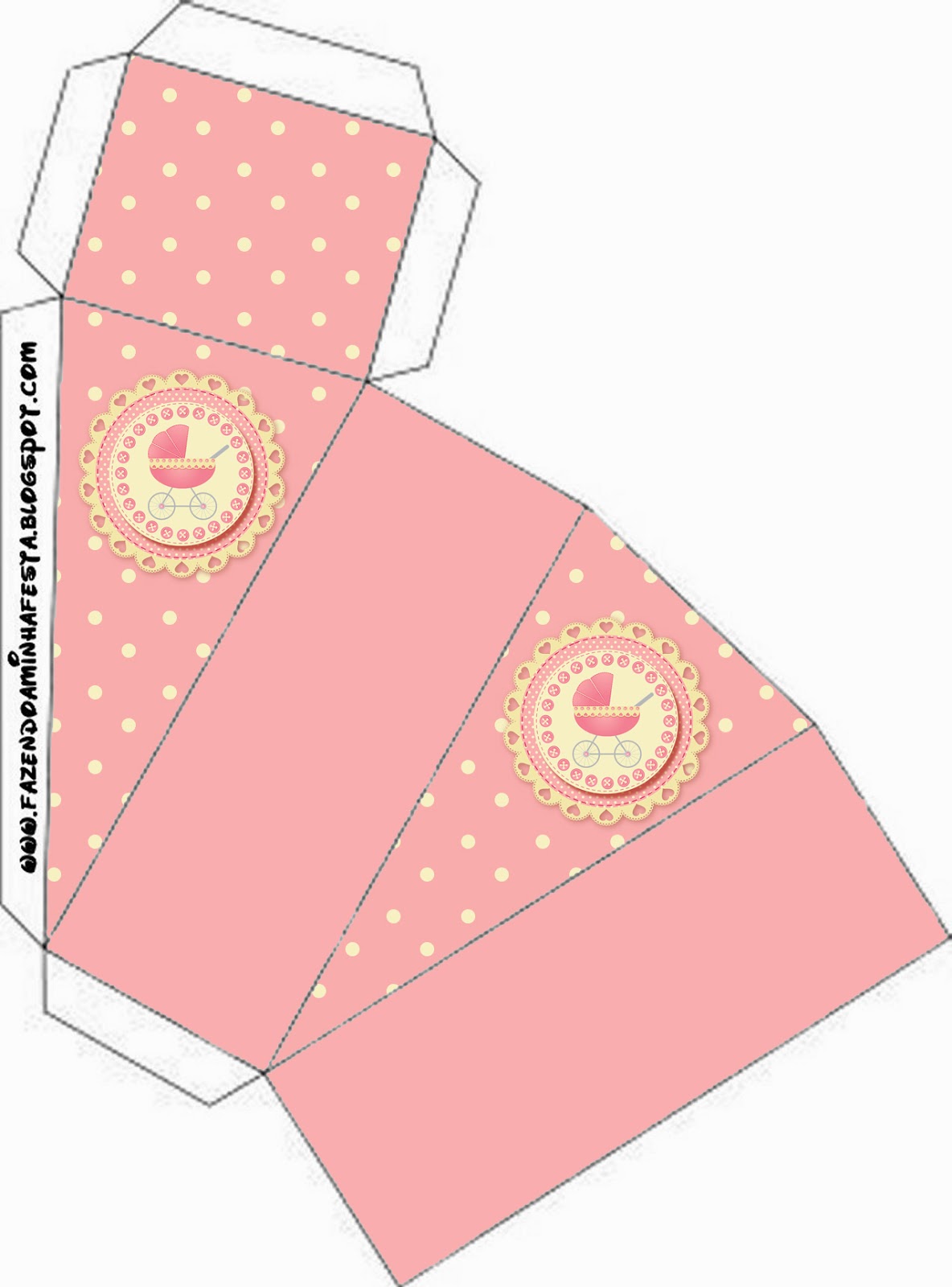 Convite Caixa Fundo Carrinho de Bebê Menina: