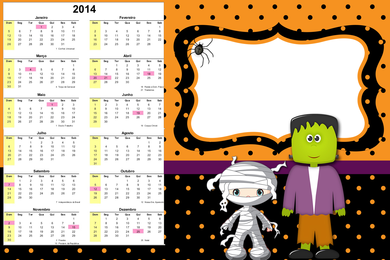 Convite Calendário 2014 Halloween Menino: