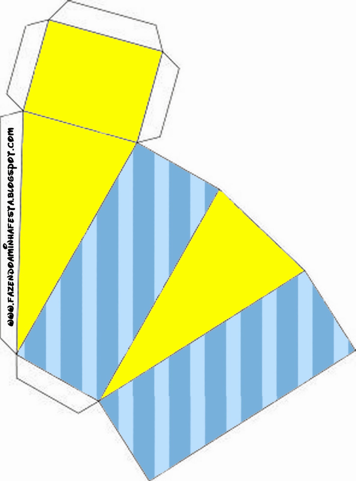 Cone Guloseimas 4 lados Amarelo e Azul Listrado:
