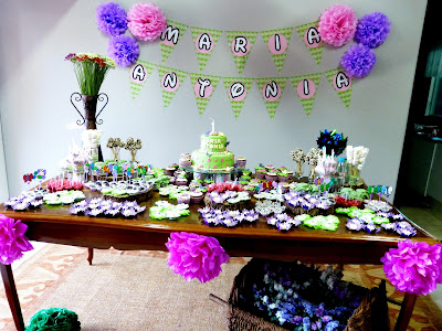 Vejam que linda festa nossa leitora Andreia Biezus fez para comemorar o primeiro aniversário de sua filha com a ajuda de seu marido! Nossa leitora usou as artes do blog e fez todos os docinhos, o bolo foi feito por sua irmã! Adorei a festa! Nossa leitora nos contou que sempre sonhou em fazer a primeira festinha de sua filha personalizada e graças o blog ela conseguiu! Fico muito feliz em ter ajudado!