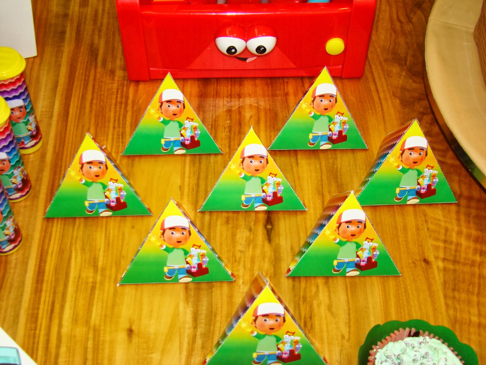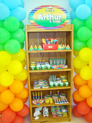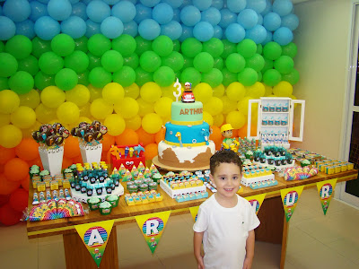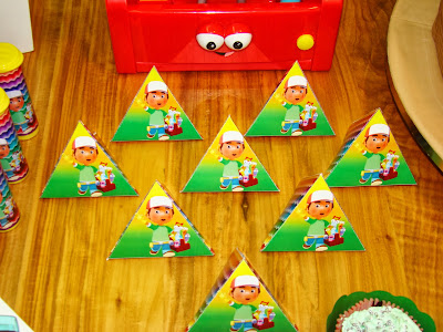 Achei uma graça a festa que nossa leitora fez para seu filho Arthur com o nosso Kit Handy Manny(Manny Mãos à Obra)! As cores usadas e a decoração ficaram perfeitas!