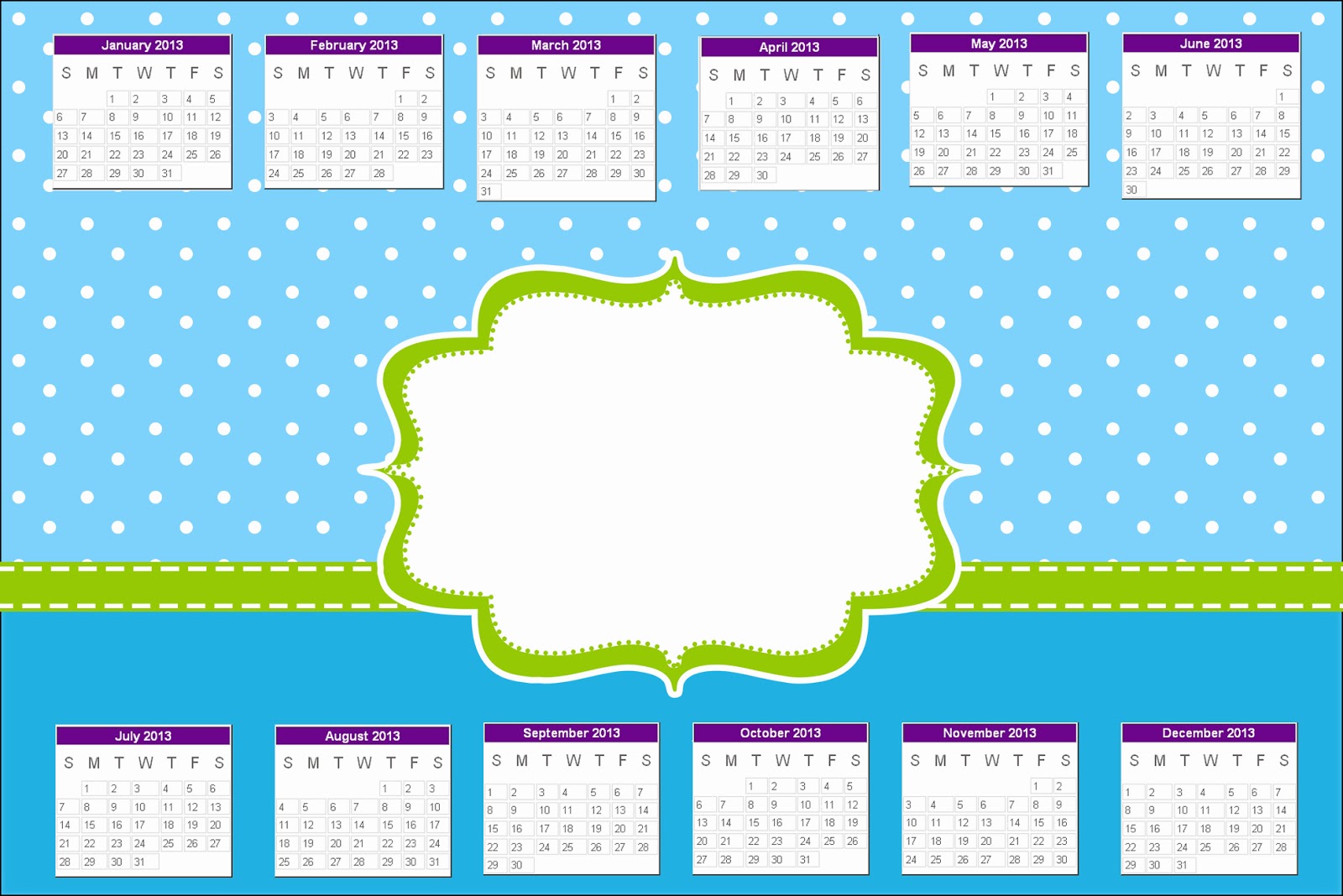 Convite Calendário 2013 Poá Azul e Verde Limão: