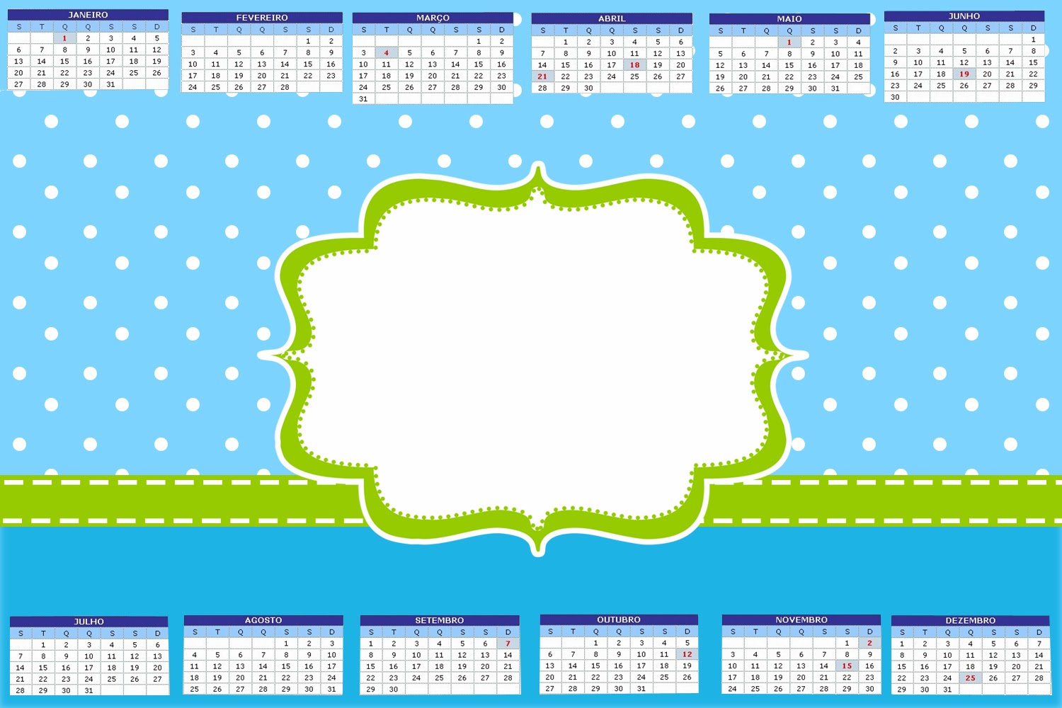 Convite Calendário 2014 Poá Azul e Verde Limão:
