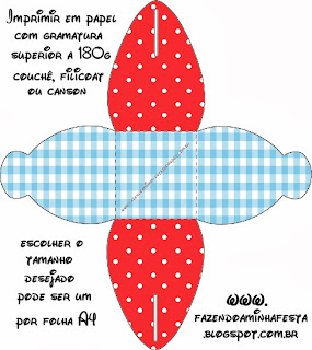 Convite Caixa Fundo Poá Vermelho e Xadrez Azul:
