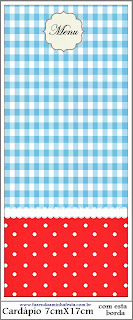 Convite, Cardápio ou Cronograma em Z Poá Vermelho e Xadrez Azul: