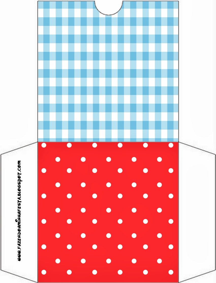 Envelope Fritas Poá Vermelho e Xadrez Azul:
