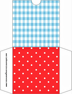 Envelope do Convite Poá Vermelho e Xadrez Azul: