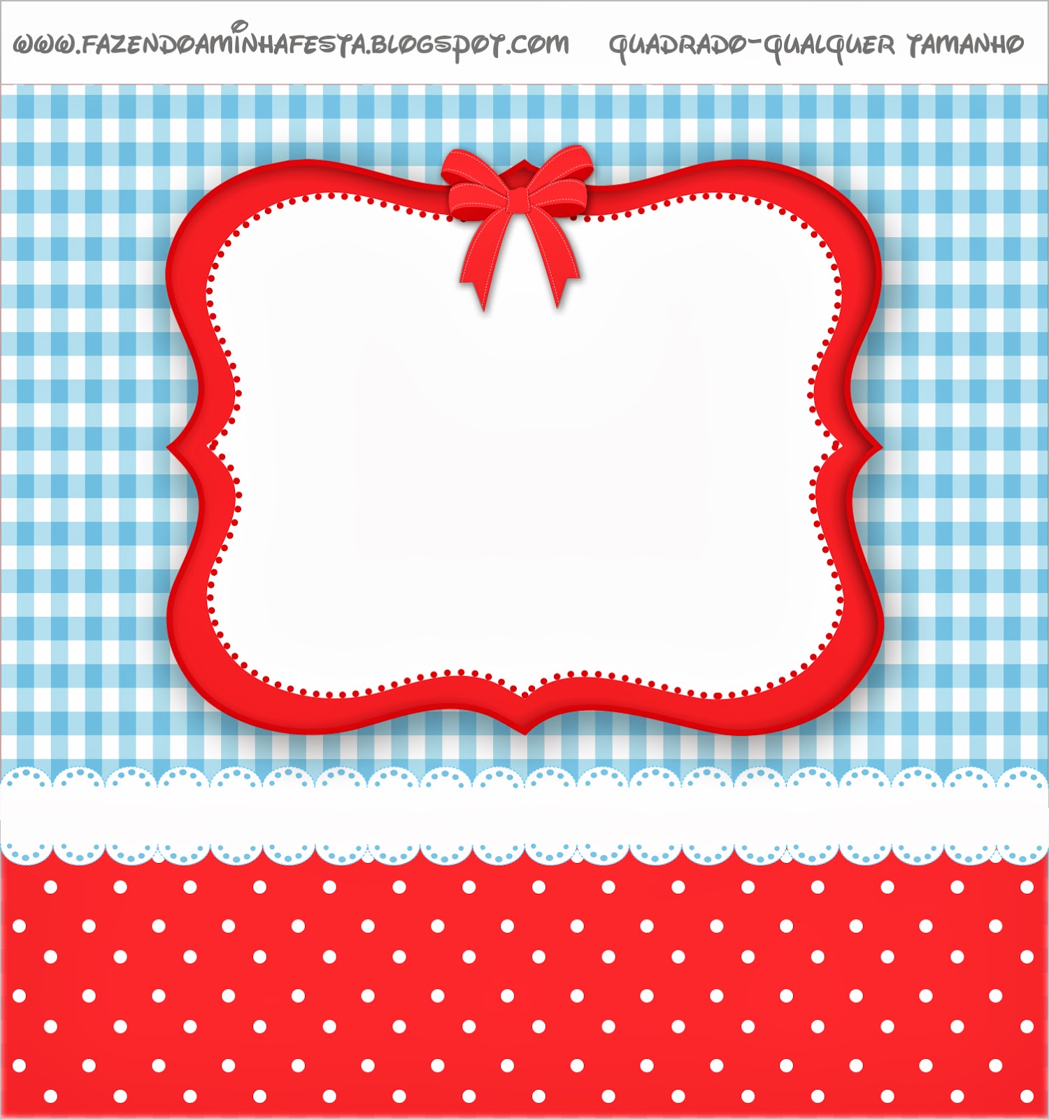 Poá Vermelho e Xadrez Azul – Kit Completo com molduras para convites, rótulos para guloseimas, lembrancinhas e imagens!