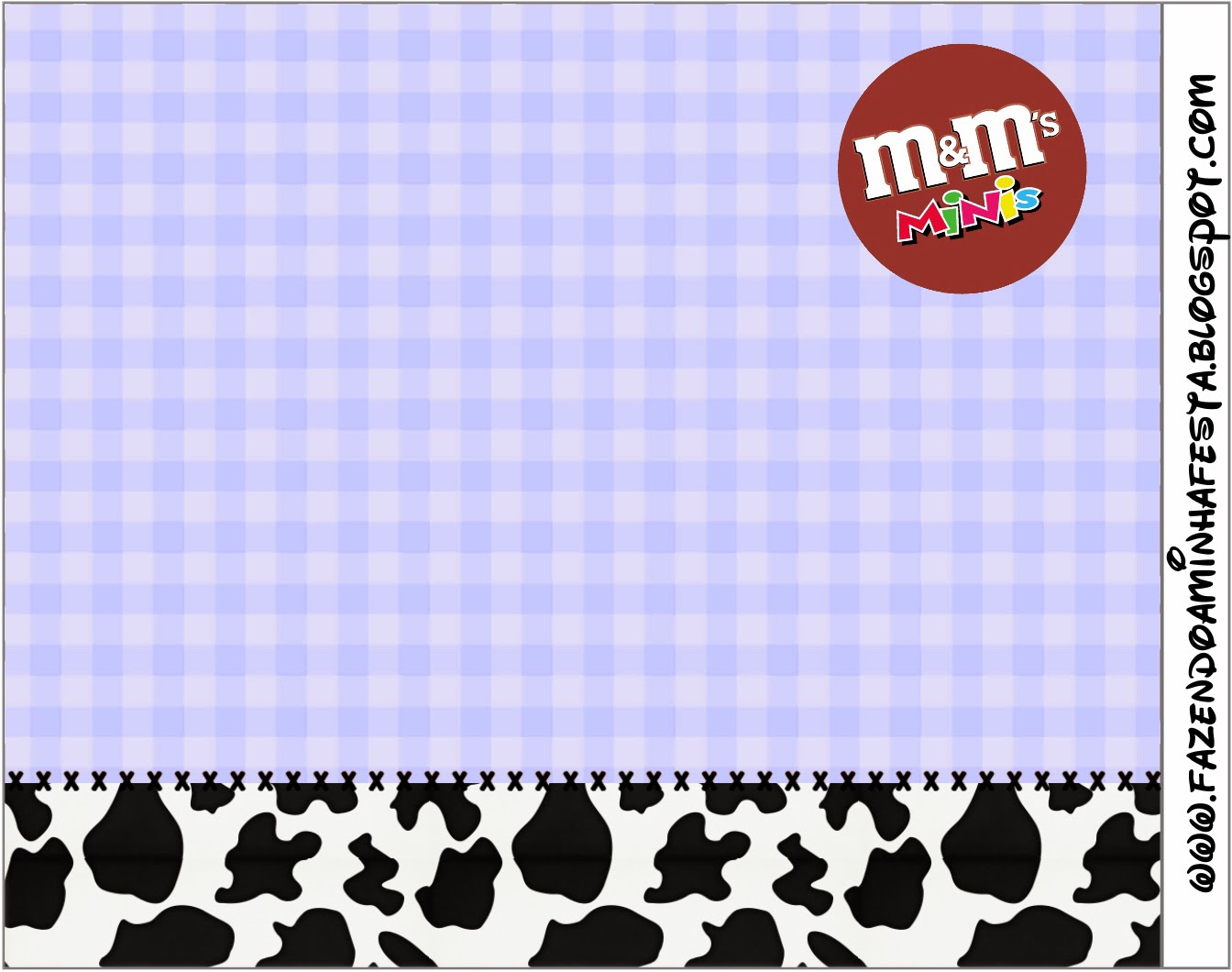 Rótulo Mini M&M Xadrez Azul e Vaquinha: