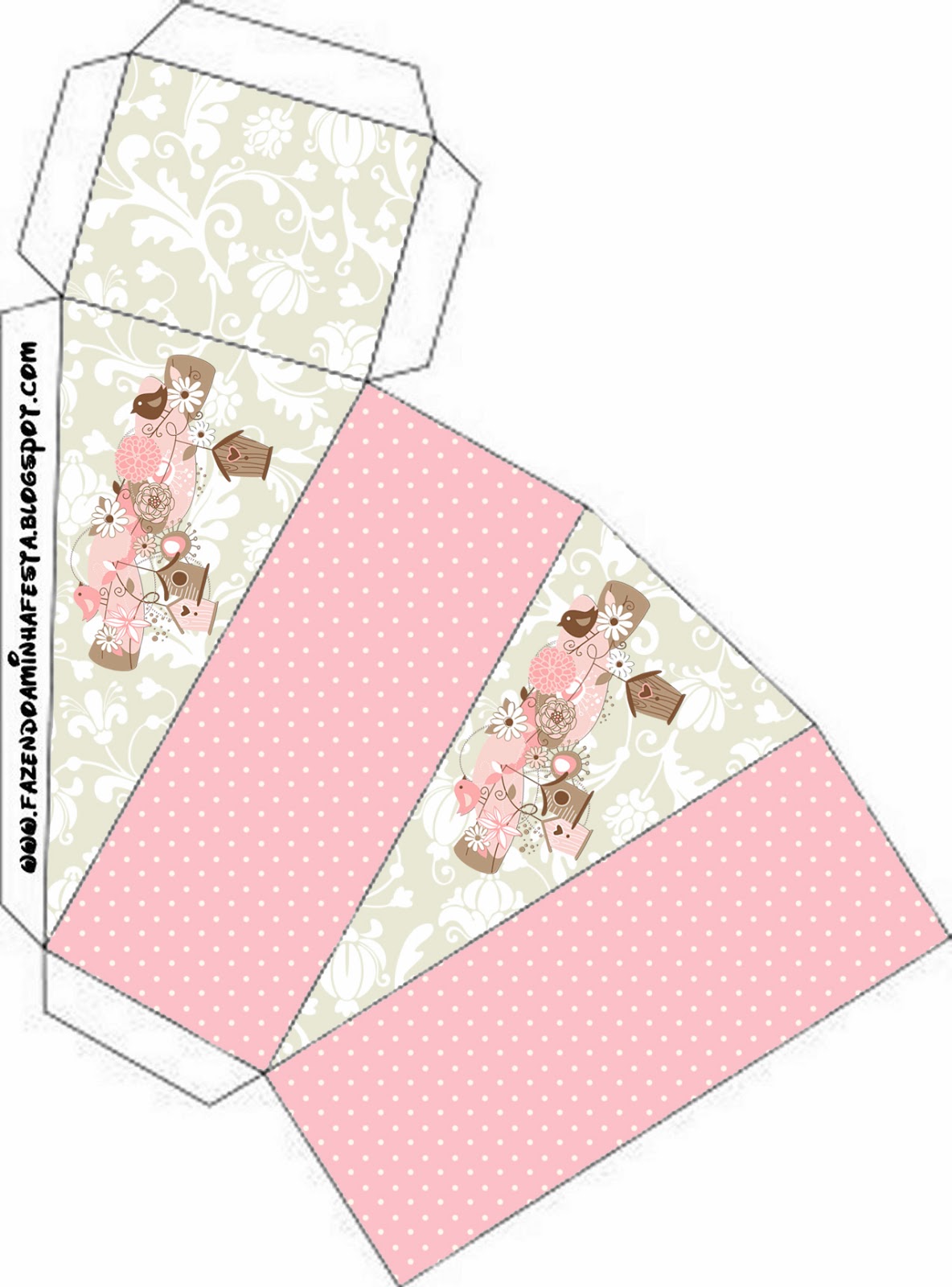 Cone Guloseimas 4 lados Passarinhos e Flores: