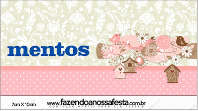 Rótulo Pirulito Mastigável Passarinhos e Flores: